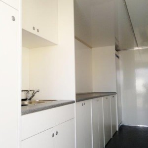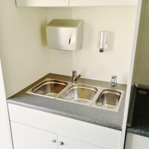 - Sanitärmodul mit Kleiderschrank (3 Spülbecken, 2 Batterien, 2 Wasserbehälter x 20l, Wasserheizer)