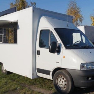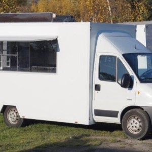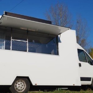 Als Lkw geliefert wurde das Fahrzeug umgebaut und an mobile Gastronomie angepasst.
