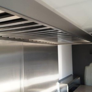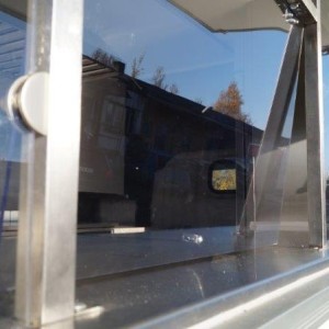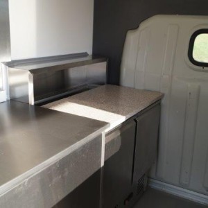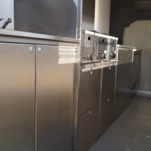 - Edelstahl-Einbaumöbel im vorderen Bereich, offen