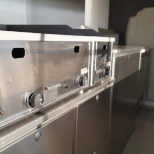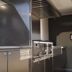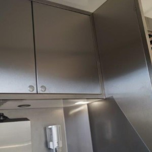 - Edelstahl-Einbaumöbel im hinteren Bereich, geschlossen