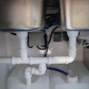 - Sanitärmodul mit Kleiderschrank (3 Spülbecken, 2 Batterien, 2 Wasserbehälter x 30 l, Wasserheizer)